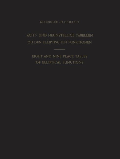 Acht- und Neunstellige Tabellen zu den Elliptischen Funktionen / Eight and Nine Place Tables of Elli