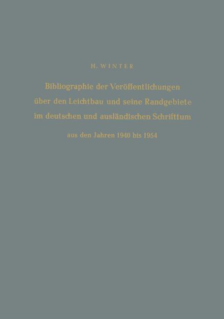 Bibliographie der Verffentlichungen ber den Leichtbau und seine Randgebiete im deutschen und ausl