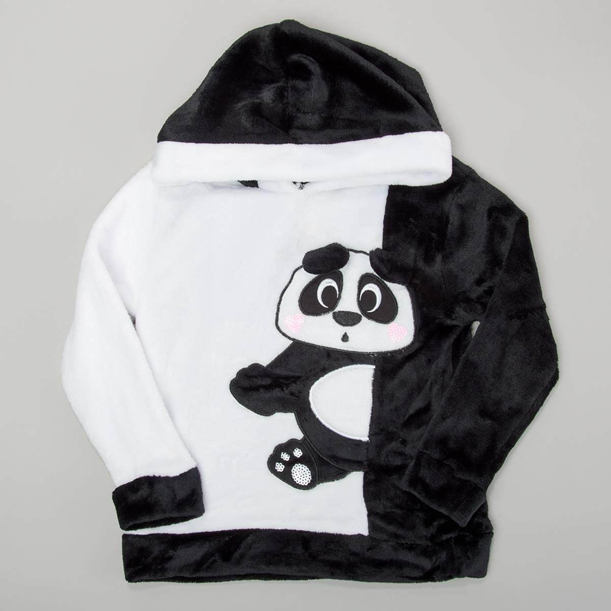 Pattern: Color Block Sleeve Length: Long Sleeve White trim on hood Reinforced cuffs and hem Embroidered panda with 3D ears, sequin heart cheeks, and sequin feet detail Super soft velour fabric Turn inside out to wash.