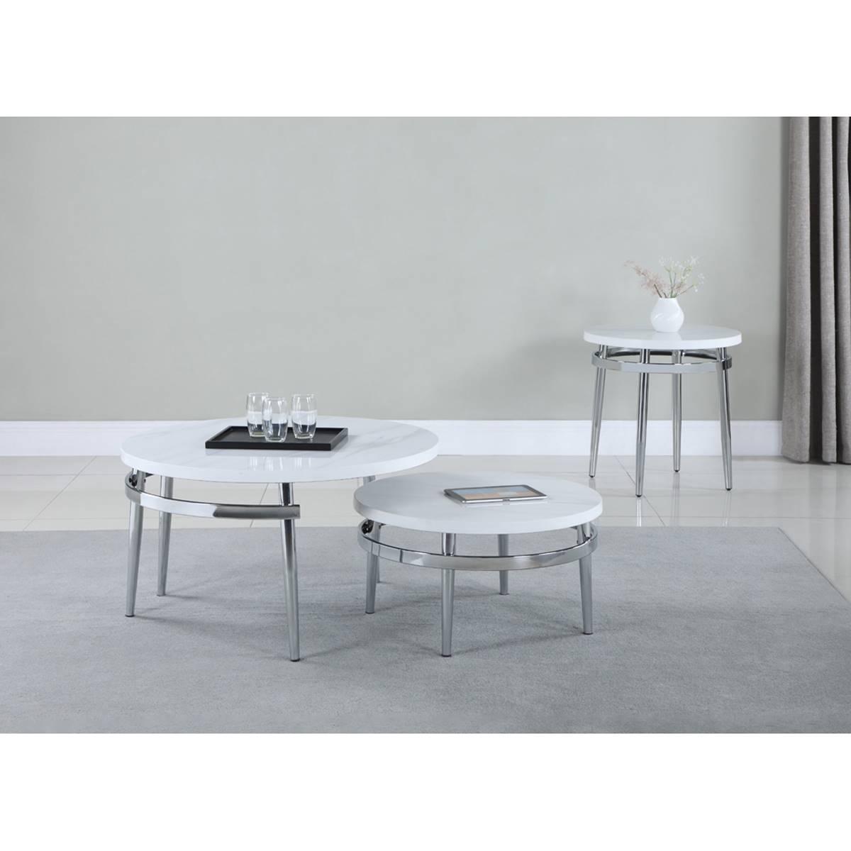 Buy Coaster White & Chrome Round End Table for $303.99 at @ Boscovs.com