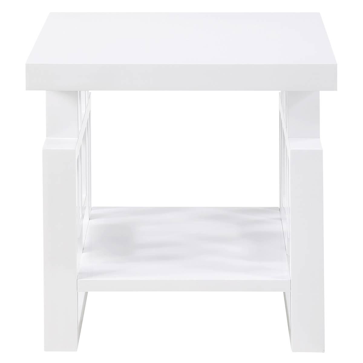 The perfect marriage of modern and traditional design, this Coaster interestingend table looks great in a variety of spaces. Smooth and sleek the open silhouette features a high glossy finish. The layered geometric design from the sides lays flat and emits a streamlined feel. Display your favorite sculptures and tchotchkes with the lower built-in shelf. The bright hue and bold pattern give any room an updated glam feel. Number of shelves: 1 Leveler/plastic glide: Plastic glide Limited Manufacturer Warranty This item requires oversize delivery. Please refer to the Order Summary in the Shipping step at checkout for the delivery charge. This product can expose you to chemicals including cadmium, which is known to the State of California to cause cancer or birth defects, or other reproductive harm. For more information, go to www.p65warnings.ca.gov/furniture.