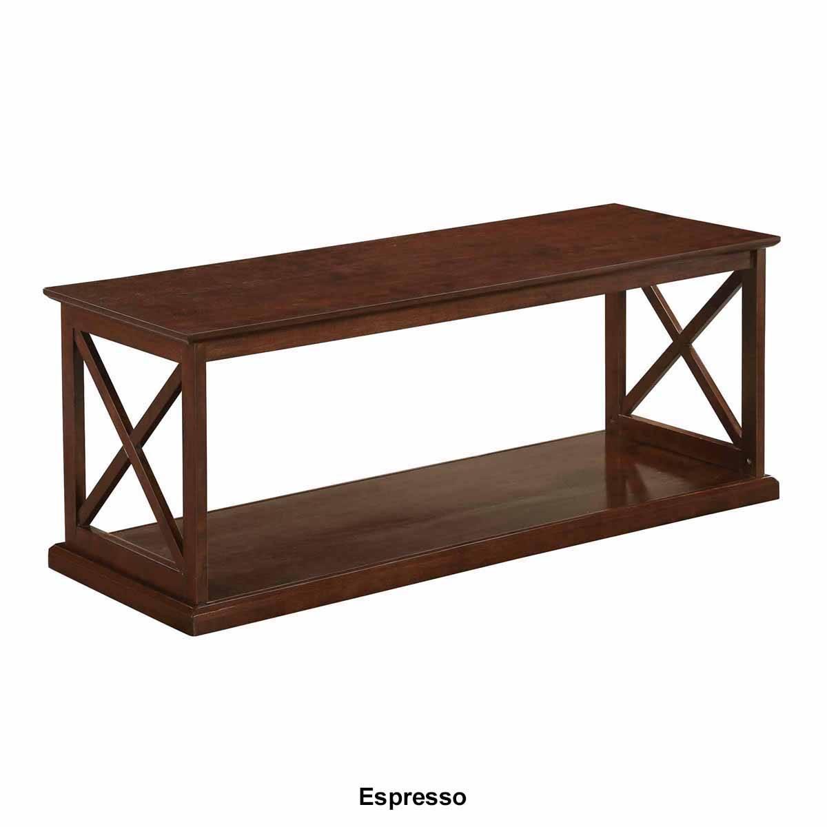 Add luxury and elegance to your home with this Convenience Concepts Coventry coffee table. This beautiful piece boasts carefully crafted beveled edges while showcasing a classic X design giving off a bold modern vibe. The table fits several home styles such as farmhouse, coastal, and transitional designs. Material: MDF, Rubber Wood, Non-Lead Based Paint Limited Manufacturer's Warranty. This item requires oversize delivery. Please refer to the Order Summary in the Shipping step at checkout for delivery charge.