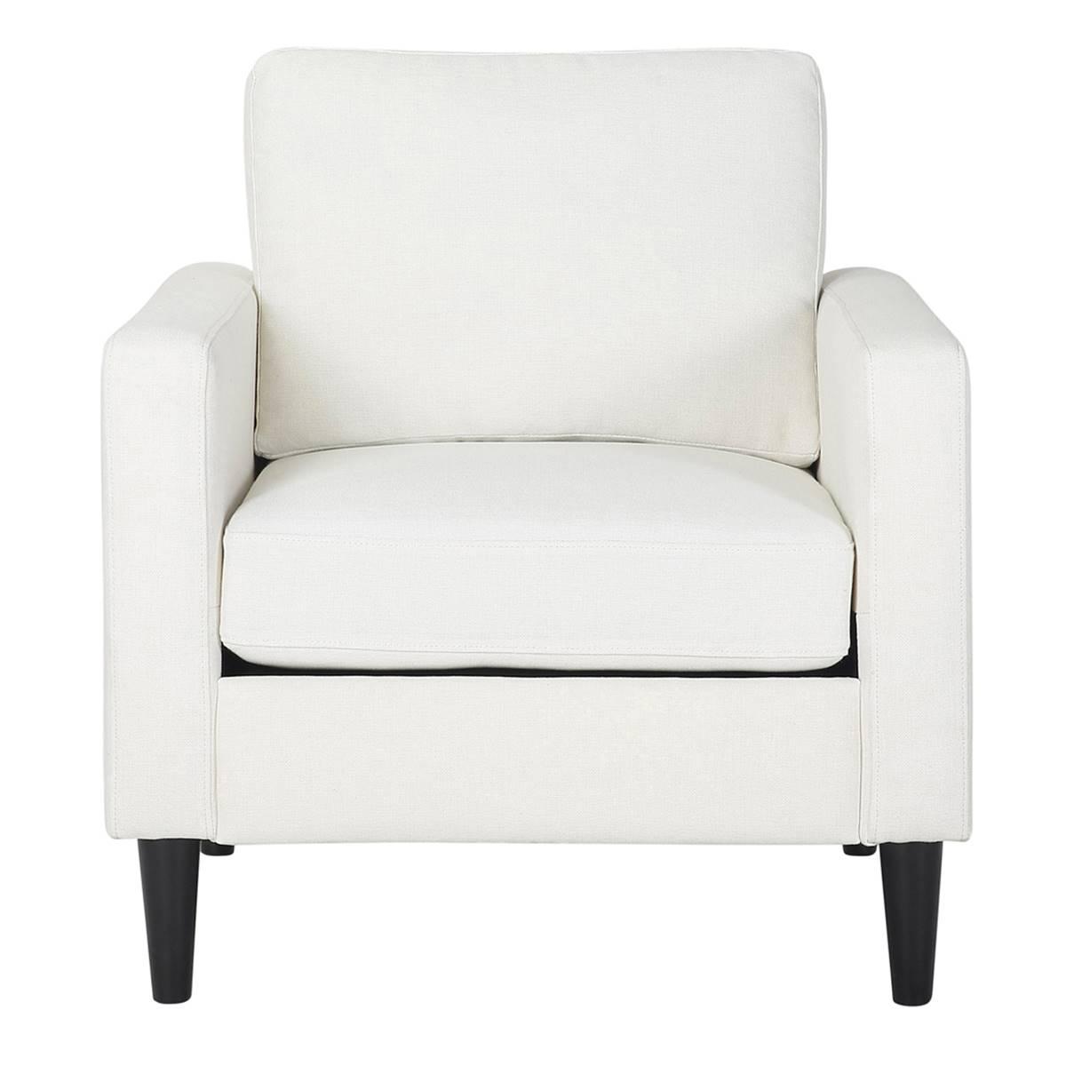 Sit back and relax on the LumiSource Wendy contemporary arm chair, sure to become a favorite spot in any living area, bedroom, or den. The Wendy arm chair features a contemporary look with rich fabric upholstery, a plush padded seat, and armrests. Materials: Polyester, Wood, Foam Care Instructions: Spot Clean Fabric, Dry Dust Wood Fabric upholstery Plush padded seat and backrest Armrests for added comfort Black wood legs Limited Manufacturer's Warranty This item requires oversize delivery. Please refer to the Order Summary in the Shipping step at checkout for delivery charge.