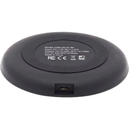 Wireless Cell Phone Charger Delivers up to 10W for Apple and Samsung Phones Who wants to plug and unplug power cords when you just want to charge your cell phone The U280-Q01FL-BK makes charging more convenient by doing it wirelessly. Just place your Qi-certified device on the round charging pad. That's all there is to it. This wireless phone charger even works through most protective phone cases up to 5 millimeters. Note: please remove any magnetic or metal objects from your phone or case before charging. Compatible with Qi-Certified Cell Phones to Ensure a Safe, Flawless Charge The U280-Q01FL-BK works with all Qi smartphones from Apple, Sony, LG, Samsung, Nokia and other popular brands. It protects your expensive device from overheating and overcharging that could lead to internal damage. An LED glows blue to indicate the charging process is underway and changes to red to let you know your phone is at 100%. The portable lightweight pad is just four inches in diameter, so it fits easily on your desktop or bedside table. An included USB cable connects the charger to a user-supplied QC USB wall charger or power adapter (QC 2.0 or 3.0 adapter is recommended for high-speed charging).