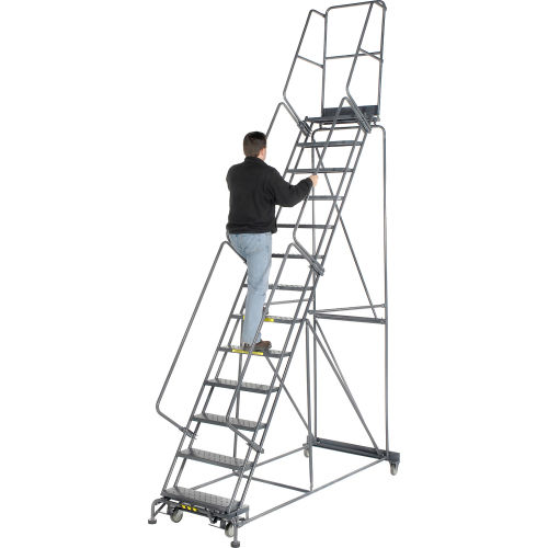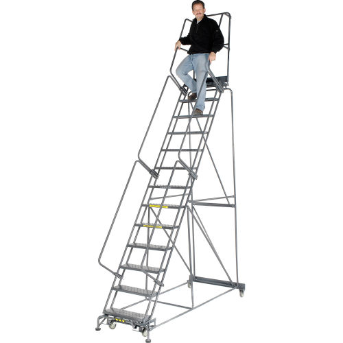 Buy Perforated 24"W 13 Step Steel Rolling Ladder 14"D Top Step for $1,125.00 at @ Globalindustrial.com