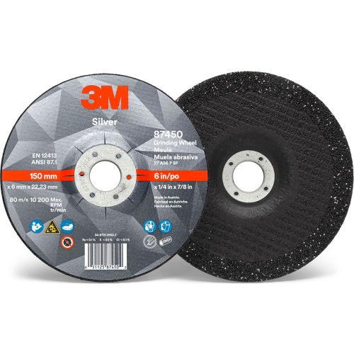 Silver Depressed Center Grinding Wheels contain 3M's newly engineered precision-shaped grain designed to deliver an unbeatable combination of performance and value. These fast cutting, long lasting wheels are ideal for heavy weld removal and other heavy-duty grinding applications. While specifically designed for use on stainless steel, mild steel, and aerospace alloys, you'll get great results on most metals. - Pkg Qty 20.