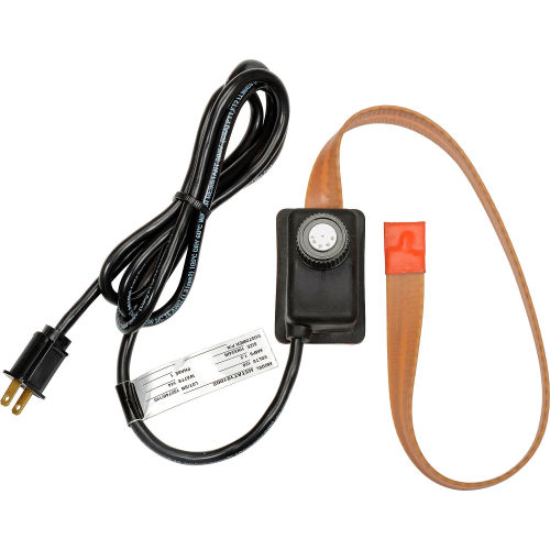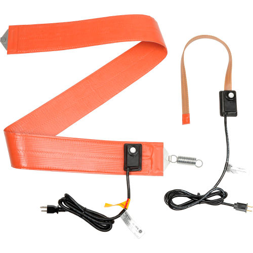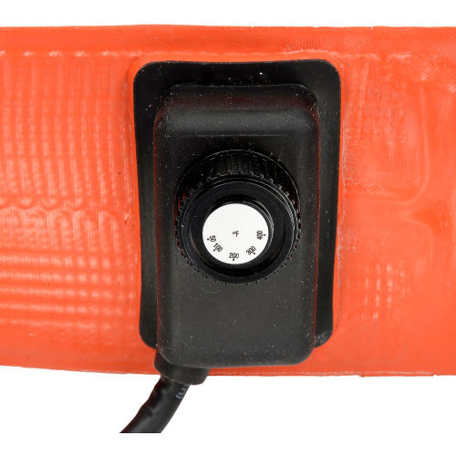This drum heater is designed with two extra-thick layers of 20 mil fiberglass reinforced silicone rubber for excellent strength, durability and flexibility. Patented 360 grounded, multi-stranded heating element meets NEC 427.23 and is uniformly placed to maximize heat distribution, and provides an extra-wide 4" coverage area. Moisture and chemical resistant heater includes an adjustable thermostat control (displays in F and C), spring closure that can be expanded to 3", and a 6' L power cord. Dielectric strength of over 2000 volts and maximum exposure temperature on heating surface is 450 . 120V model has a standard 3-prong NEMA 5-15 plug.