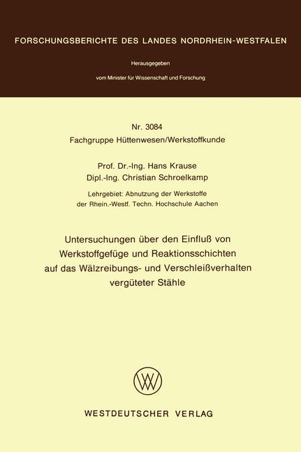Untersuchungen ber den Einflu von Werkstoffgefge und Reaktionsschichten auf das Wlzreibungs- und