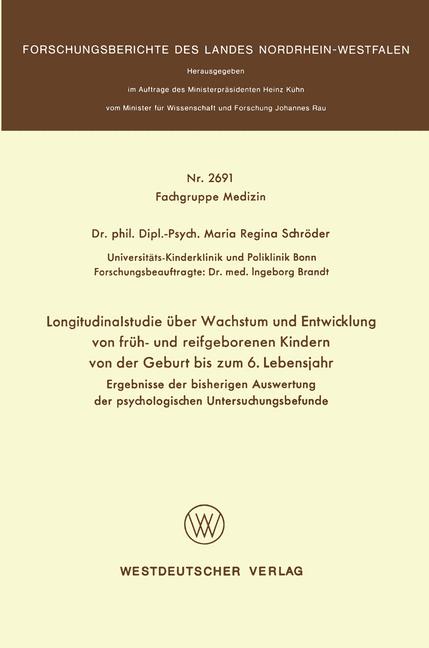 Longitudinalstudie ber Wachstum und Entwicklung von frh- und reifgeborenen Kindern von der Geburt