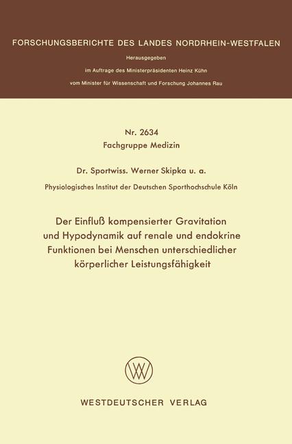 Der Einflu kompensierter Gravitation und Hypodynamik auf renale und endokrine Funktionen bei Mensch