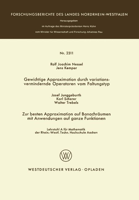 Buy Gewichtige Approximation durch variationsvermindernde Operatoren vom Faltungstyp. Zur besten Approxi for $45.00 at @ Link.springer.com when you apply the 10% OFF coupon at checkout.