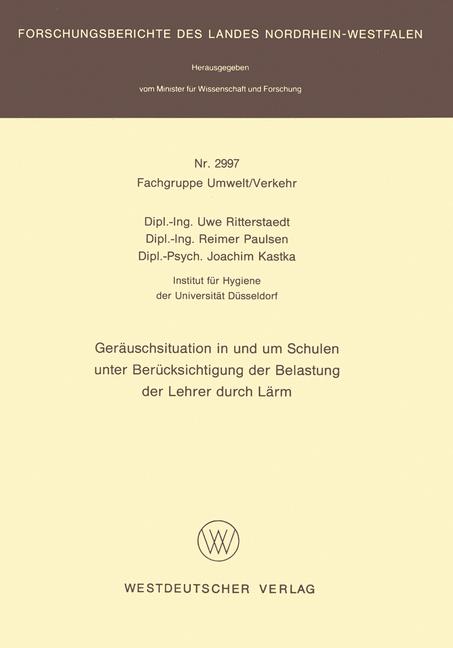 Geruschsituation in und um Schulen unter Bercksichtigung der Belastung der Lehrer durch Lrm