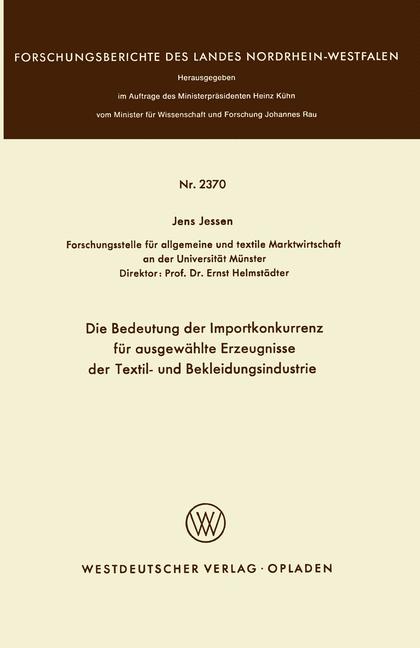Buy Die Bedeutung der Importkonkurrenz fr ausgewhlte Erzeugnisse der Textil- und Bekleidungsindustrie for $40.50 at @ Link.springer.com when you apply the 10% OFF coupon at checkout.