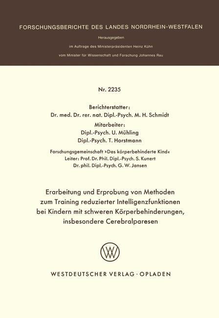 Erarbeitung und Erprobung von Methoden zum Training reduzierter Intelligenzfunktionen bei Kindern mi