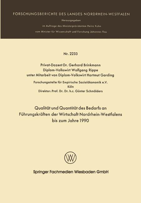 Qualitt und Quantitt des Bedarfs an Fhrungskrften der Wirtschaft Nordrhein-Westfalen bis zum Jah