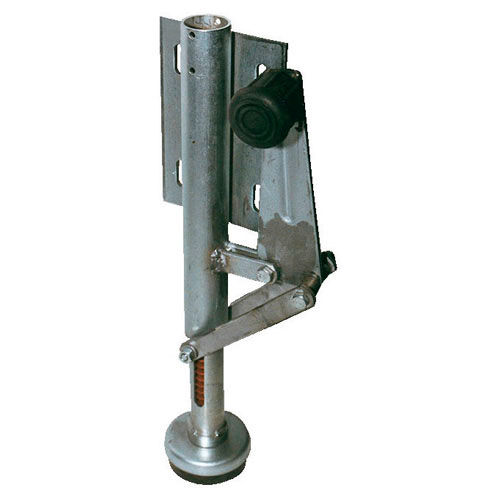 SIDE-MOUNT FLOOR LOCK Mount to the Side of Carts and Rolling Equipment. This unique side-mounted floor lock can be mounted to the side of a cart that does not permit flush mounting underneath. Spring-loaded foot operation locks and releases easily. Rubber bottom pad offers maximum gripping power. Durable zinc-plated steel construction.