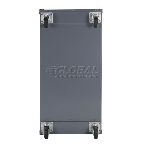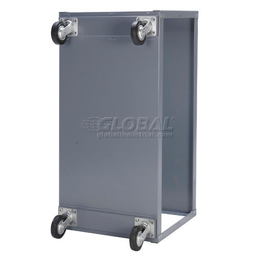 Heavy-duty 14 gauge steel frame construction with reinforced box formed table top. Four swivel casters for easy maneuverability. Durable gray finish. Assembles easily.