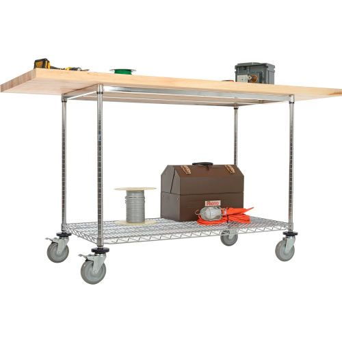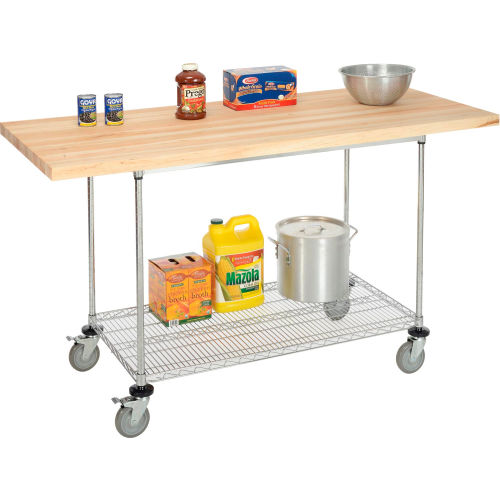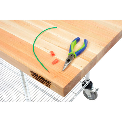 Buy Global Industrial Chrome Wire Mobile Workbench, 72 x 30", Maple Butcher Block Square Edge for $609.00 at @ Globalindustrial.com