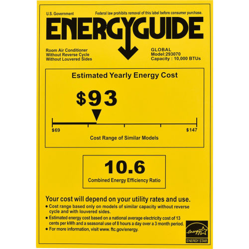 Global Industrial Wall Air Conditioner, 10000 BTU, Cool Only, Wifi Enabled, 115V.
