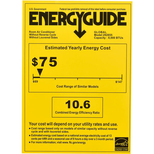 Global Industrial Wall Air Conditioner 8000 BTU - Cool Only - Wifi Enabled - 115V.