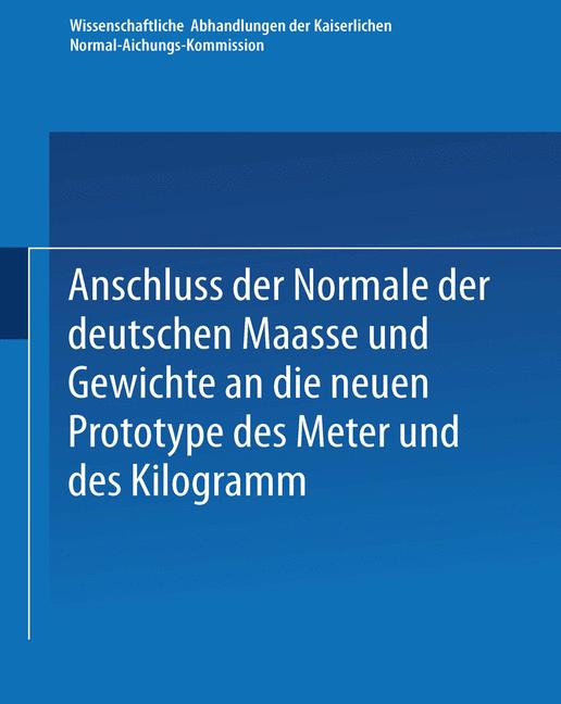 Anschluss der Normale der deutschen Maasse und Gewichte an die neuen Prototype des Meter und des Kil
