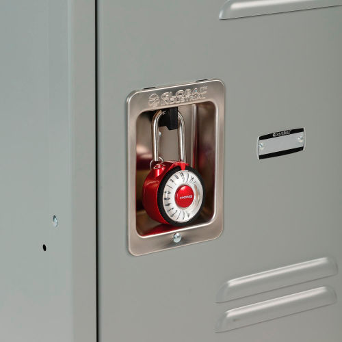 ✓ Pre-assembled for easy installation ✓ Extra wide louvers promote ventilation ✓ Catch-free recessed handle prevents accidental operation Provide employees, students, or facility guests with a secure place for their belongings with the Global Industrial Infinity Four-Tier 4-Door Locker. Their durable construction and powder coat finish provide years of long-lasting, reliable service for facilities such as schools, health clubs, medical offices, and more. Lockers must be anchored securely to floors and have four foot plates included. Foot plates bolt to outside locker leg supports and may be anchored to the floor. Legs add 6" to height. Anchors are sold separately. Lockers have secure 3-point positive locking system and stainless steel door latch. Includes blank number plates. Compartment Measurements: W x D x H. 1-Year Limited Warranty. Color: Gray Tier Type: Four Doors: 4 Material: Steel.