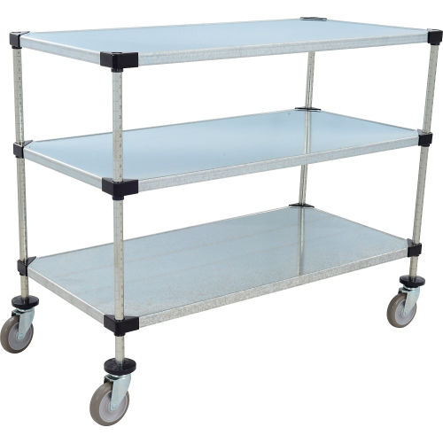 Nexel 3 Shelf Cart, Galvanized, 48"W x 24"D x 39"H, Polyurethane Casters