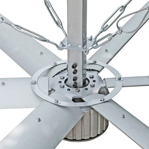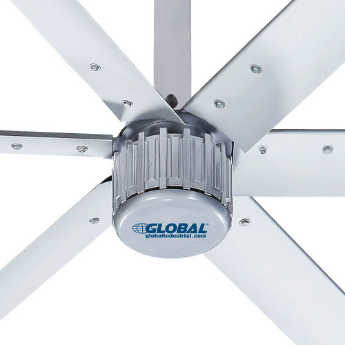 ✓ Cools up to 3,000 sq. ft space ✓ Quieter operation, longer lifespans, higher power-to-weight ratio ✓ Includes a Fire Alarm System for added safety monitoring The Global Industrial 14' HVLS Ceiling Fan operates with direct drive configuration to deliver cooling up to 3,000 sq. ft for open offices, warehouses, gyms, assembly rooms, atriums, and more. This ceiling mountable fan features 6 aluminum alloy blades in a professional silver finish that deliver constant cooling air flow at a low volume output ideal for locations where communication and comfortable cooling air flow are required. The HVLS fan utilizes a brushless direct current (BLDC) motor that offers several advantages over traditional brushed motors including much quieter operation, longer lifespans, higher power-to-weight ratio, and increased reliability with lower maintenance requirements. Additional features also include a reversible air flow and a Fire Alarm System for added safety monitoring. Includes internal connecting cable, safety steel cables. UL and cUL listed. Fan Diameter is 168".