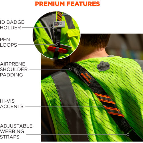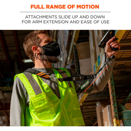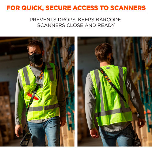 The Squids 3137 Padded Barcode Scanner Sling Lanyard is designed to keep barcode scanners secure and accessible during warehouse and distribution work. This industrial-grade scanner sash lanyard is built with a heavy-duty webbing strap and buckles for work in the harshest environments. Airprene shoulder padding provides long lasting comfort, while a hook & loop breakaway design allows the sling to safely detach from the worker in emergency situations. Two small loop attachments on the lanyard easily connect and disconnect to small captive holes built into cordless barcode scanners. Additional features include an ID badge holder and pen loops for convenient storage and quick access. For increased visibility in busy distribution centers and warehouses, the scanner sling has hi-vis and reflective striping. One-size-fits-all, the webbing strap is adjustable to fit a variety of workers. Additional/replacement loop attachments are sold separately in packs of 10. Features: QUICK, SECURE ACCESS Prevents drops, keeps barcode scanners close and readyINDUSTRIAL GRADE Heavy-duty materials designed for harsh environmentsALL-DAY COMFORT Airprene shoulder padding plus adjustable webbing strapBREAKAWAY DESIGN Hook & loop closure allows sling to safely detach in emergenciesTWO LOOP ATTACHMENTS Connect to small captive holes built into cordless scanner for secure tethering to the lanyardHI-VIS REFLECTIVE STRIPING For visibility in busy environmentsBADGE HOLDER & PEN LOOPS For convenient access to ID badges, building access key cards and pensFITS MOST STANDARD JOBSITE SCANNERS Barcode Scanner, QR scanner, UPC scanner, Product Scanner, Inventory Scanner, etc.AMBIDEXTROUS DESIGN Can easily be reconfigured for right- and left-handed workersADJUSTABLE Web strap adjusts to fit a variety of workersREPLACEMENT LOOPS SOLD SEPARATELY Squids 3133 Barcode Scanner Loop Attachments (10-pack) eliminate the need to switch out the loop attachment on every exchangeWASHABLE Hand wash and dry with mild soap and water.