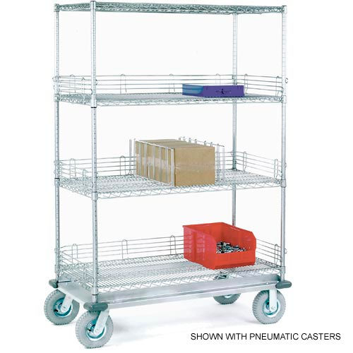 Nexel 4 Shelf Truck, Chrome, 48"W x 24"D x 81"H, Rubber Plate Casters, 2 Rigid, 2 Swivel