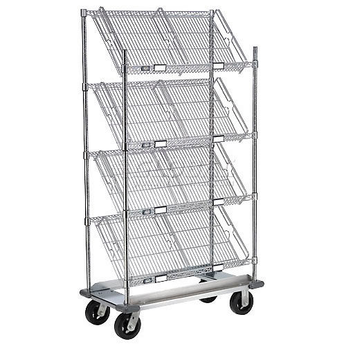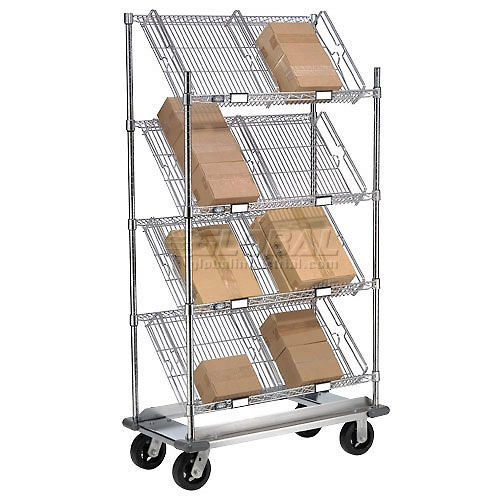 Buy Nexel 4 Slant Shelf Truck, Chrome, 48"W x 24"D x 70"H, Rubber Plate Casters, 2 Rigid, 2 Swivel for $469.95 at @ Globalindustrial.com