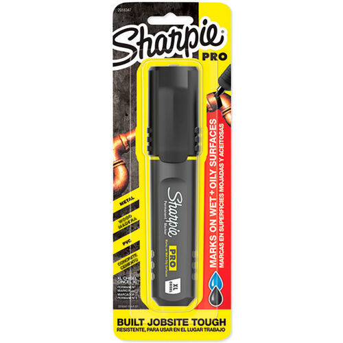 With permanent ink designed to mark on wet and oily surfaces, Sharpie PRO Permanent Markers are built jobsite-tough. The newly redesigned permanent markers better fit the needs of tradesmen with features like an anti-roll barrel shape, cap clip, lanyard loop, and more. This black professional marker with a chisel tip will get the job done. - Pkg Qty 4.