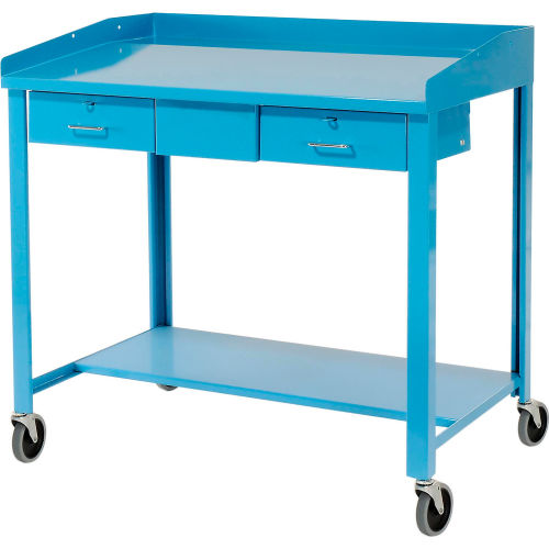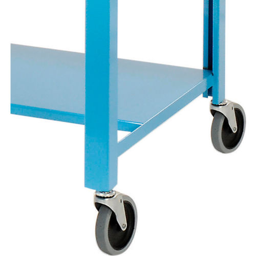 polyurethane swivel caster set adds easy mobility to Global Industrial Extra-Wide Shop Desks.