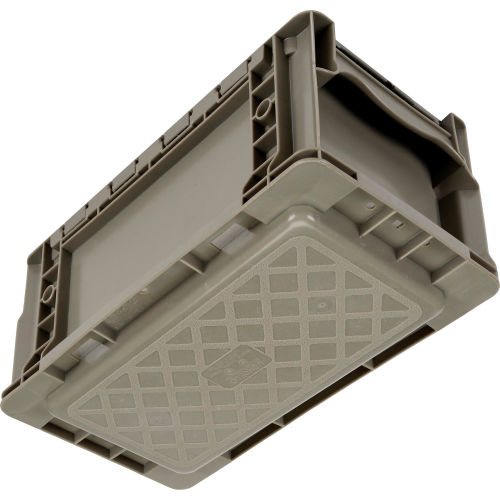Efficiently transport goods or work in progress. These injection molded, high density gray polyethylene containers have reinforced corners to handle even the heaviest items, offering a stacking capacity of 50 lbs. Straight-walled sides allow various sizes to stack securely and fit accurately on standard sized pallets. Comfort grip handles on 2 sides.