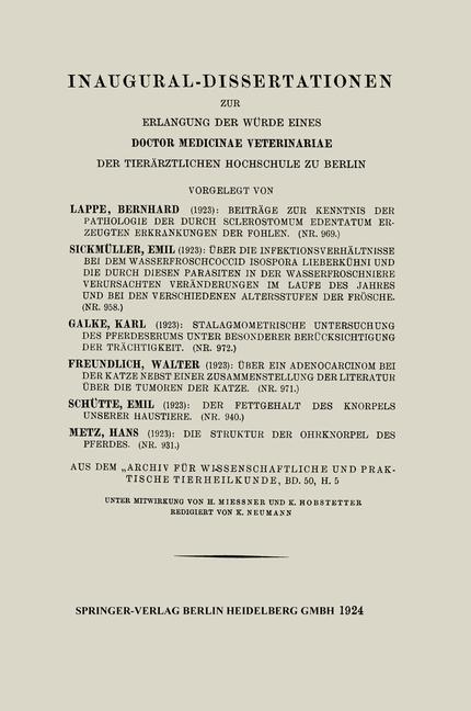 Dieser Buchtitel ist Teil des Digitalisierungsprojekts Springer Book Archives mit Publikationen, die seit den Anfngen des Verlags von 1842 erschienen sind. Der Verlag stellt mit diesem Archiv Quellen fr die historische wie auch die disziplingeschichtliche Forschung zur Verfgung, die jeweils im historischen Kontext betrachtet werden mssen. Dieser Titel erschien in der Zeit vor 1945 und wird daher in seiner zeittypischen politisch-ideologischen Ausrichtung vom Verlag nicht beworben.