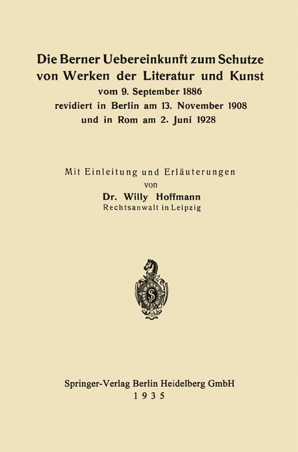 Buy Die Berner Uebereinkunft zum Schutze von Werken der Literatur und Kunst vom 9. September 1886 revidi for $40.50 at @ Link.springer.com when you apply the 10% OFF coupon at checkout.