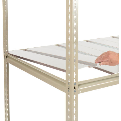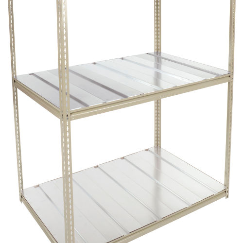 High Capacity Boltless Rack with Steel Decking Additional Level Add an additional level to your existing rack. Includes 4 beams and galvanized steel decking. Beams have tan baked enamel finish.