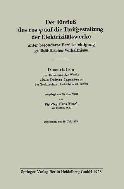 Der Einflu des cos auf die Tarifgestaltung der Elektrizittswerke unter besonderer Bercksichtigu