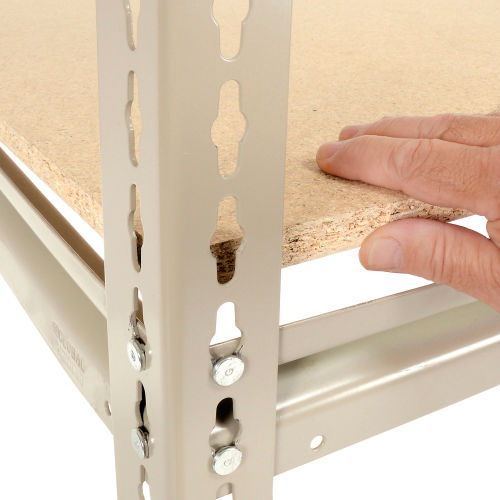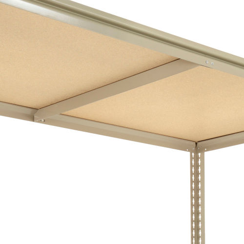 High Capacity Boltless Rack With Wood Decking - Additional Level This 72"W x 24"D shelf can be added to existing rack. Made of precut 5/8" particleboard, an economical choice for decking. Tan baked enamel finish. Includes 4 beams. 1500 lb. shelf capacity.