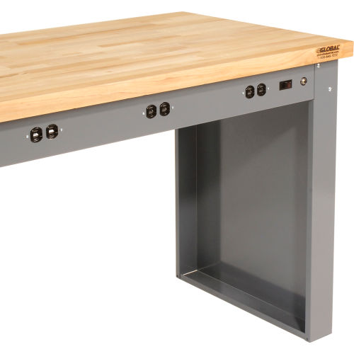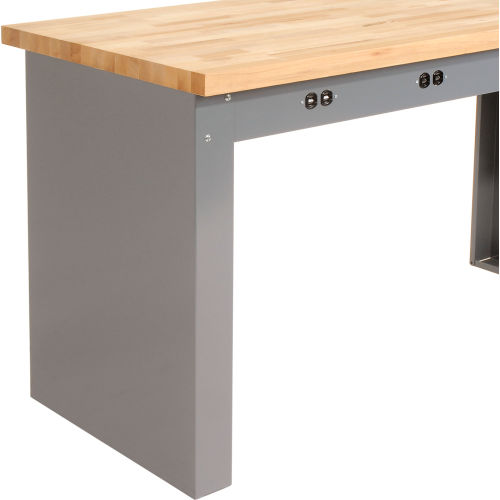 Global Industrial Extra Long Panel Leg Workbench, 96 x 36", Power Outlets, Maple Square Edge