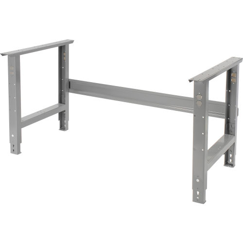 Each high quality, heavy-duty bench is built to give you years of dependable performance. Adjustable height legs feature removable duplex knockouts on front and rear for installation of either a hard wired electrical outlet or an optional plug-in outlet that easily screws into place with no wiring necessary. All steel parts are specially treated to resist rust and finished with gray powder coat. Built for rugged use, yet is still easy to keep clean. 1-5/8" thick high pressure plastic laminate-faced particle board core top gives you a smooth, rigid work surface that lasts and lasts. Bench stringer comes with mounting hardware to assemble legs to the bench top. Leg height adjusts in 1-1/2" increments.