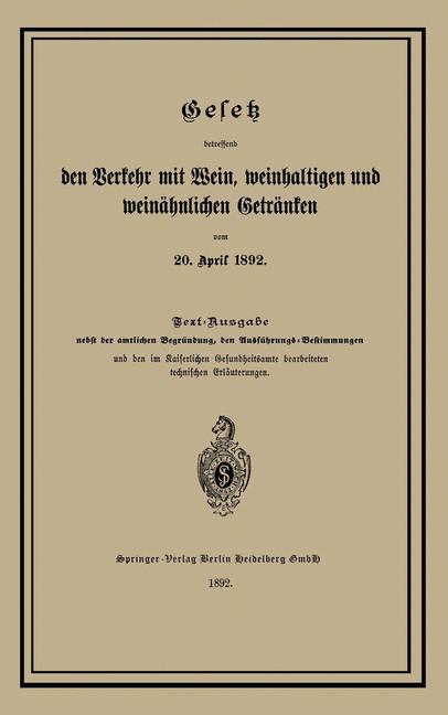 Buy Gesetz betreffend den Verkehr mit Wein, weinhaltigen und weinhnlichen Getrnken vom 20. April 1892 for $40.50 at @ Link.springer.com when you apply the 10% OFF coupon at checkout.