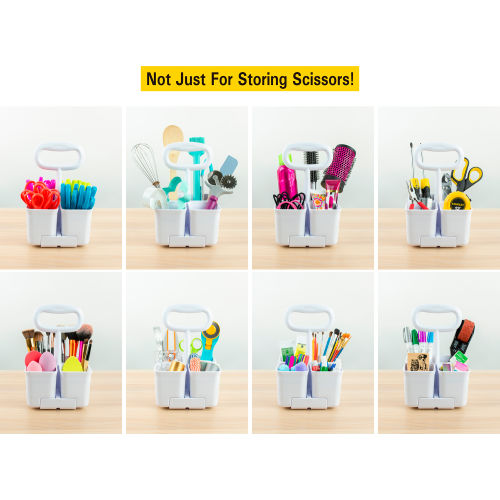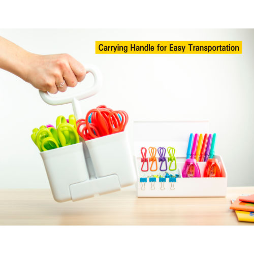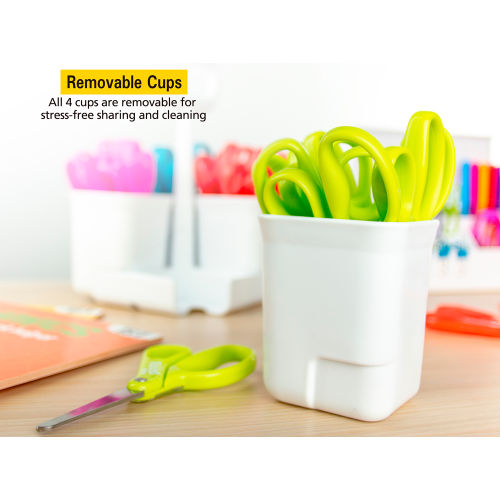 Made for easy sharing, the functional scissor caddy and scissor combination is perfect for schools, daycares, preschools, group settings, and more. The durable scissor tote is designed for a busy setting - the cups sit sturdily in the tote and are easily removed for convenient sharing and cleaning.