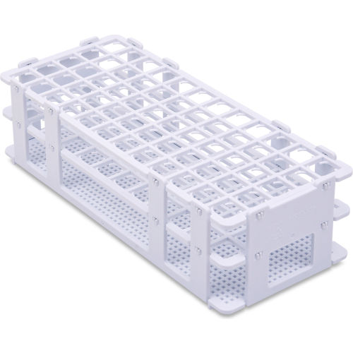 Retainer fingers hold tubes firmly in the rack plates with no fear of dislodging, making them perfect for both decanting and water bath work. Features: Fingers allow simultaneous decanting to save valuable time Specially formulized plastic allows the rack to submerge in water baths Fingers secure tubes while in water baths to eliminate the risk of diluting or spilling Features end plates for labeling as well as numbered and lettered rows for tube identification Fold up sides lock firmly into the grip decks; assembly takes only seconds Unloaded racks are stackable Tube size indicated is for grip function; smaller tubes may fit for storage purposes Steam autoclavable at 121 C (250 F).