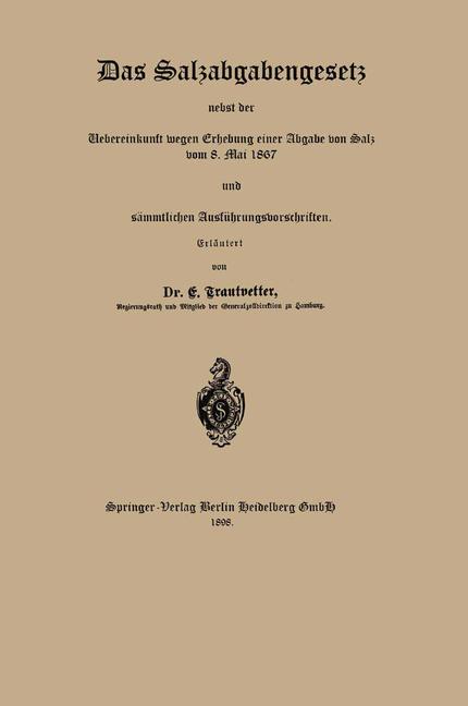 Das Salzabgabengesetz nebst der Uebereinkunft wegen Erhebung einer Abgabe von Salz vom 8. Mai 1867 u