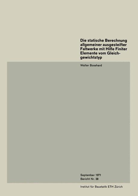 Buy Die statische Berechnung allgemeiner ausgesteifter Faltwerke mit Hilfe Finiter Elemente vom Gleichge for $40.50 at @ Link.springer.com when you apply the 10% OFF coupon at checkout.