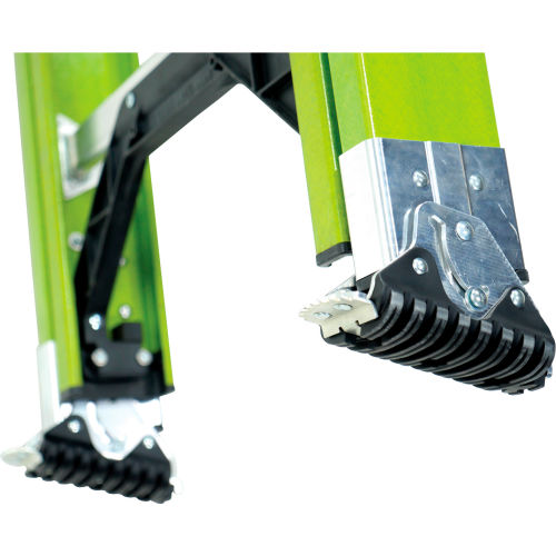 Little Giant 20' HyperLite SumoStance lb. Capacity Type IAA Fiberglass Extension Ladder - 17220 The most catastrophic ladder accidents are caused by over-reaching, working on uneven surfaces, and stepping from the ladder to the roof and back. People have attempted to solve the leveling problem with rocks and boards and are left to improvise, or do nothing. The HyperLite SumoStance is the only extension ladder in the world with Little Giant's patented SumoStance leveling outrigger system, which more than doubles the ladder's base width and increases side-tip stability by up to 600 percent. Features SumoStance leveling outrigger system helps ensure a safe, level setup and reduces the risk of side-tip falls and gives you a safe secure feeling while using your ladderNonconductive fiberglass construction provides additional safety while working around electricityLightweight design helps prevent incidence of common injuries such as torn rotator cuffs, herniated disks, ankle sprains and knee ligament tears from loading and unloading or carrying heavy traditional extension laddersRoof line indicator to ensure a quick, safe setup with at least three feet above the contact pointSolid-riveted plate rung construction is stronger, more durable, and easier to replaceConvenient side-to-side and front-to-back angle level bubbles help ensure a safe setup every timePatent-pending HyperLite SumoStance weighs less than traditional fiberglass extension ladders even though it comes with two wide-stance levelersInterlocking side rails with internal rail guides on both the bottom of fly section and top of base section for easy glide during operationNo protruding external guides in the way as you ascend and descendSpring-assisted heavy-duty extruded aluminum rung locks for smooth, secure operationPatent-pending Sure-Set foot stays in position when you set it to either flat nonslip rubber shoe or spike mode for soft surfacesThe patent-pending Ground Cue prevents injuries by signaling the user when it is safe to dismount the ladderRail shield bracket and shoe protects fiberglass rails from damage and weatherHigh-strength polymer molded leg brace for increased stabilityCo-molded nonslip rubber wall pads protect working surfaces and provide superior stabilityWeather-resistant UV-inhibiting compound in fiberglass resin for extended outdoor useComplies with all OSHA, ANSI A14 strength and testing standards. Rung/step spacing complies to OSHA and Int'l standardsOSHA 1910.23, OSHA 1926.10.53, CSA Z11, EN131-1, AS/NZS 1892.2.6.2Up to 20 percent more rigid than comparable standard extension laddersWide, flat rungs provide great comfort and reduce foot fatigueSide-mounted, dual-pulley system reduces the effort required to raise the fly section by 45 percent and removes the trip hazard caused by traditional center-pulley rope systemsBraided rope is larger, softer and more durable than ordinary ladder ropeEngineered nail notch in the shoe allows you to secure the ladder to prevent slide outs for added peace of mind1-Year limited warrantyThe HyperLite SumoStance is available in the following duty ratings and sizes: Extra Heavy Duty Type IA 300 lbs: 16', 20', 24', 28', 32', 36' and 40' ; Special Duty Type IAA lbs: 16', 20', 24', 28' and 32'Based on tests performed in a controlled ANSI-compliant test lab.
