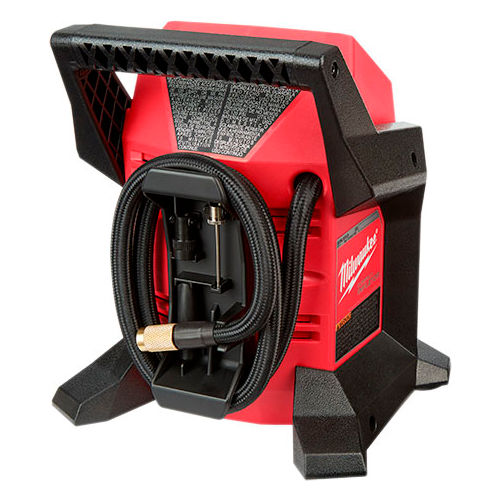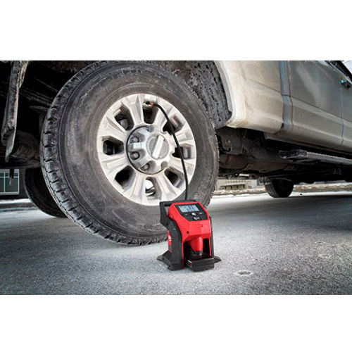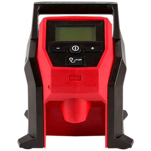 FASTEST CORDLESS TIRE INFLATOR. The Milwaukee M12 Compact Inflator delivers fast, accurate, easy inflation with the portability to take anywhere. With the capability to complete demanding applications like car, LT truck, and compact equipment tires, the M12 Compact Inflator gives users ultimate power and efficiency. Rated to deliver over 120PSI, The high efficiency motor and pump top-off car tires in under 1 minute. The TrueFill Auto shut-off technology delivers highly accurate pressure, protects from overfill, and automatically senses speed of fill to deliver precise shut-off at the desired PSI. Additionally, the unit includes a large easy to read back-lit LCD, anti-vibration feet, and 26" inch hose with an all brass Schrader chuck. Includes: (1) Ball Inflation Needle(1) Presta Chuck(1) Schrader Chuck(1) Inflator Nozzle.