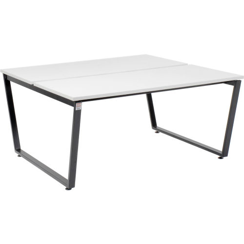 Interion Open Office/Agile Office Collaborative Desk, Double Sided, 60"W x 60"D x 30"H Interion By Global Industrial Double-sided Open Office/Agile Office Collaborative Desk - A clean and modular design which can be configured for any office space. This open concept minimizes the interruption of the surroundings, creating a sleek and modern collaborative work environment. Each work surface is made of a durable white laminate over wood fiberboard finish and is supported by heavy duty steel tube legs in satin black. Each leg has level-adjustable non-marring feet for stability. Optional translucent, magnetic whiteboard or fabric partitions and 2 or 3-drawer matching file drawer available. Easy to clean and assemble. Also available in single workstation configuration. Contact Global Industrial's free Space Planning Service for office layout assistance at 1-800-645-1232 or email sales@globalindustrial.com.