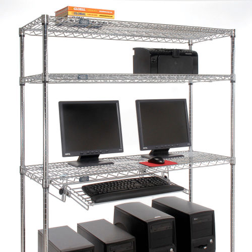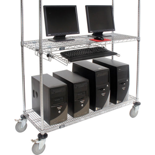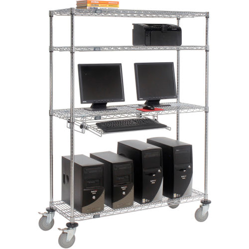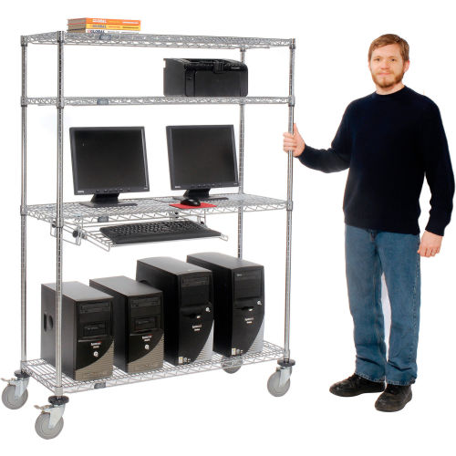 Buy Nexel 4-Shelf Mobile Wire Computer LAN Workstation w/Keyboard Tray, 48"W x 18"D x 69"H, Chrome for $375.95 at @ Globalindustrial.com
